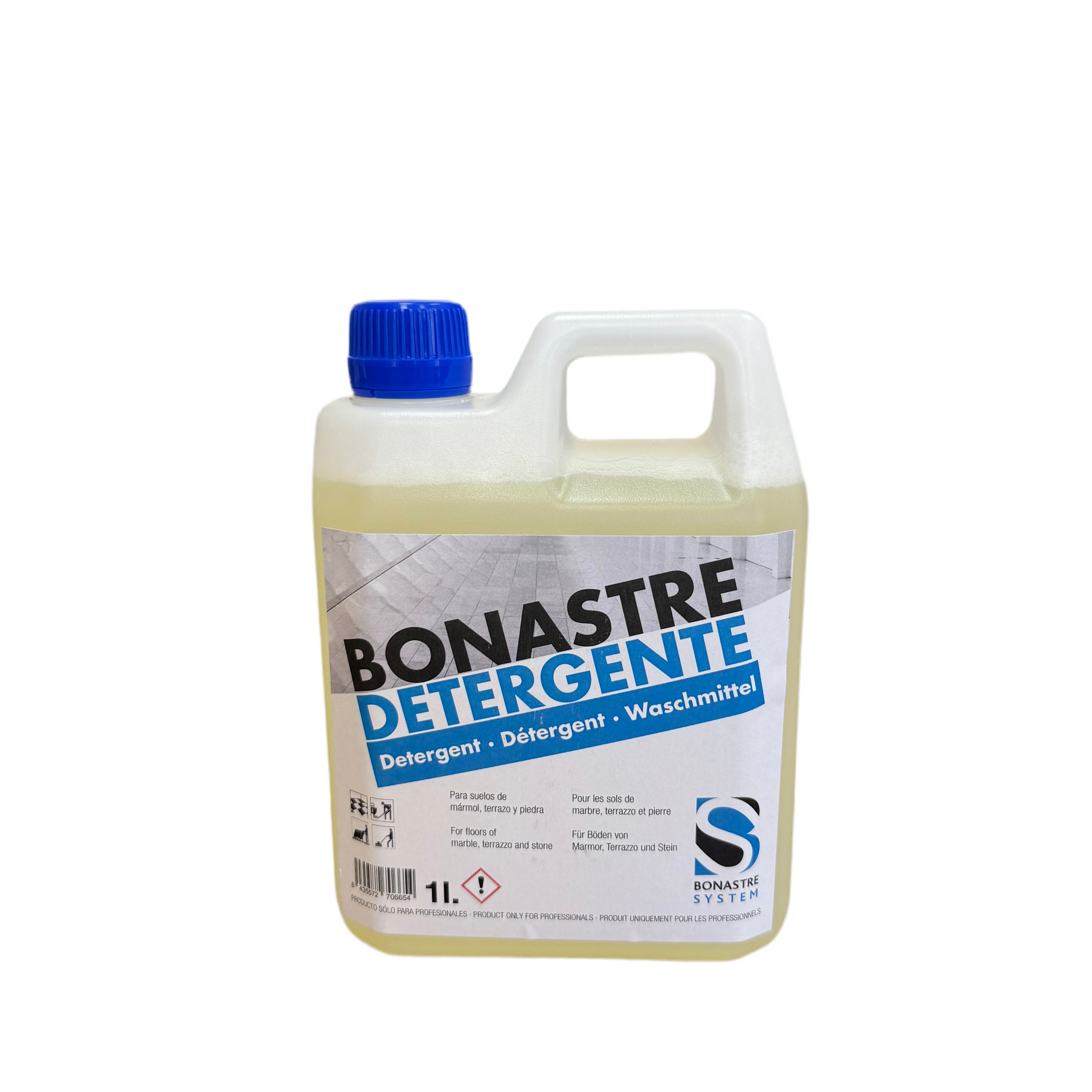 Bonastre Detergent is a specialized microcrystallizing cleaner designed for daily maintenance and final polishing of floors. It enhances and preserves the natural gloss of surfaces when used with an auto-scrubber or floor polisher. Ideal for calcium-based stones (marble, travertine, limestone), granite, and ceramic, this detergent ensures long-lasting shine while keeping floors clean and residue-free.