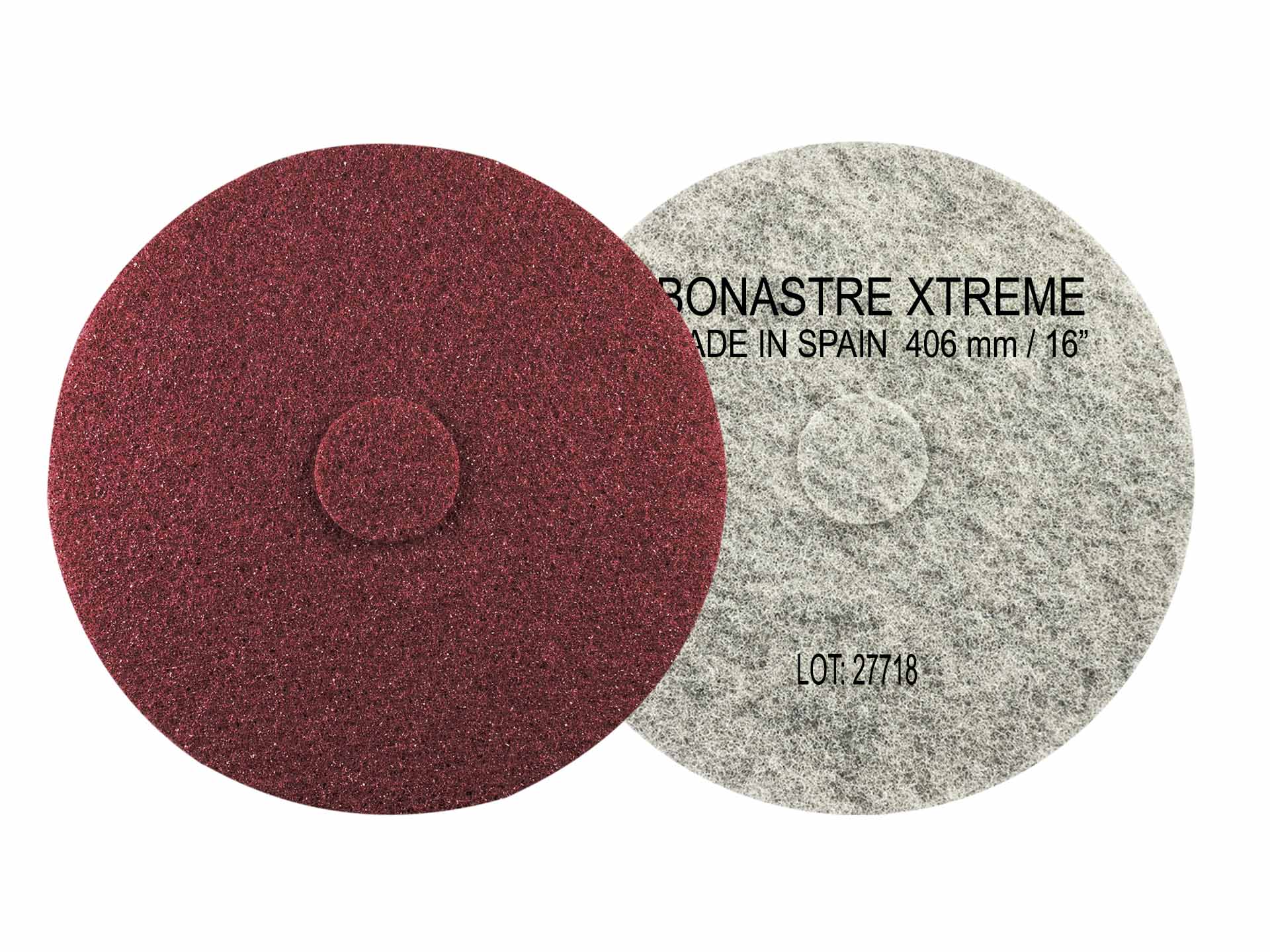 Transform your surfaces with Bonastre’s Xtreme line of pads, specially designed to renew, polish, and maintain surfaces like concrete and hydraulic tiles. Crafted with a resilient natural fiber formula, these pads are perfect for tackling extremely rough surfaces such as concrete, terrazzo, and worn calcium-based stones. The natural pad backing ensures high resistance, outperforming traditional pads and providing more square footage per pad.