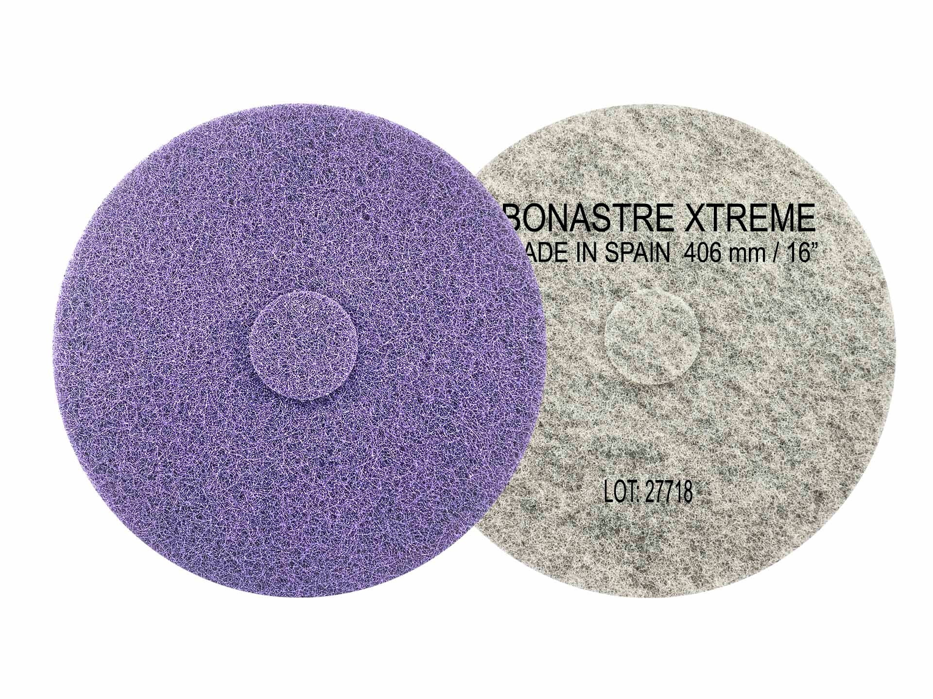 Upgrade your floor care routine with Bonastre’s Xtreme line of pads. These pads feature a unique natural fiber formula, making them ideal for use on extremely rough surfaces like concrete, terrazzo, and worn calcium-based stones, even with light lippage. The natural pad backing is highly resistant, ensuring you get more square footage per pad compared to traditional options.